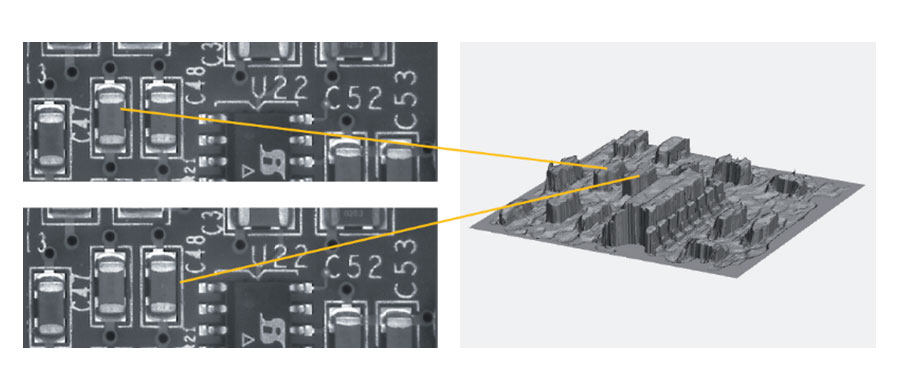 QMT Vision InspectorLes coordonnées 3D des points visibles de la surface de l’objet sont déterminées à partir de 2 images (ou plus) de différents points de vue. Ceci est fait en calculant la carte de disparité de la configuration des caméras étalonnées.