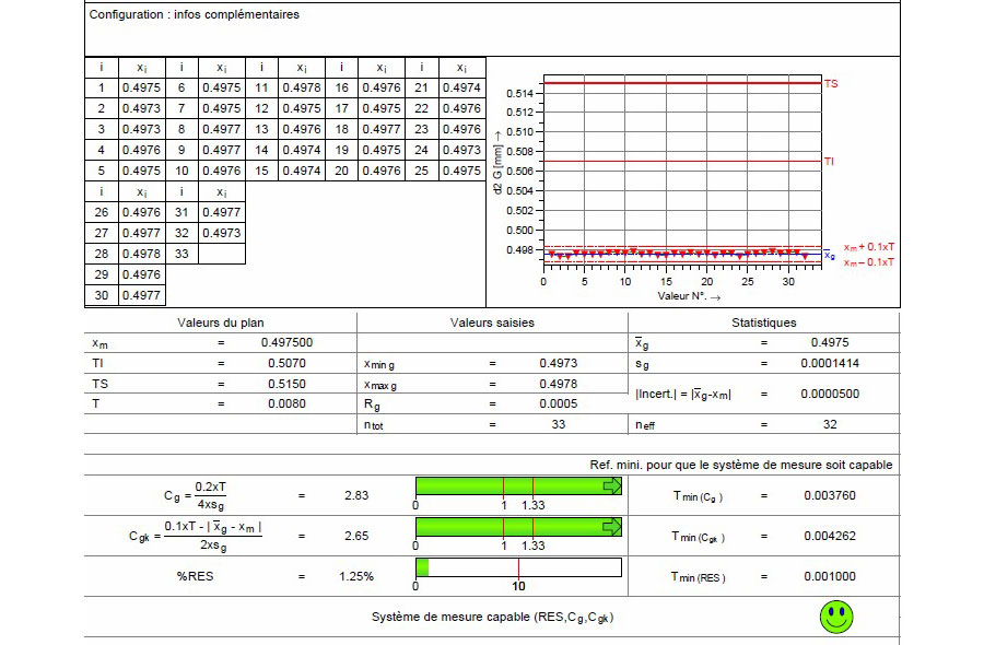 Afin d'atteindre les objectifs de capabilité, la fonction QMTJust a été implémentée. Avec la performance de l'équipement et du logiciel, les objectifs de capabiliés ont été atteints et vérifiés par une étude MSA
