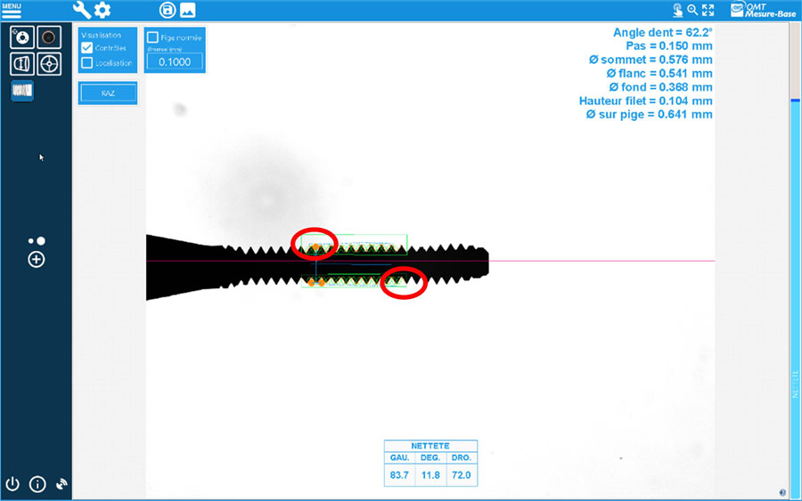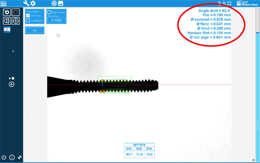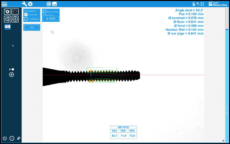 La qualité des micro filetages est une exigence du secteur horloger, un contrôle de l’outil en amont de l’opération est la seule garantie d’un résultat optimal. Le QMTProjector-100, équipement de mesure de haute précision, est parfaitement adapté pour le contrôle de tarauds horlogers. Cet appareil de contrôle bénéficie du logiciel QMTMesure-Base pour la mesure dimensionnelle à haute précision (sans aucune programmation).