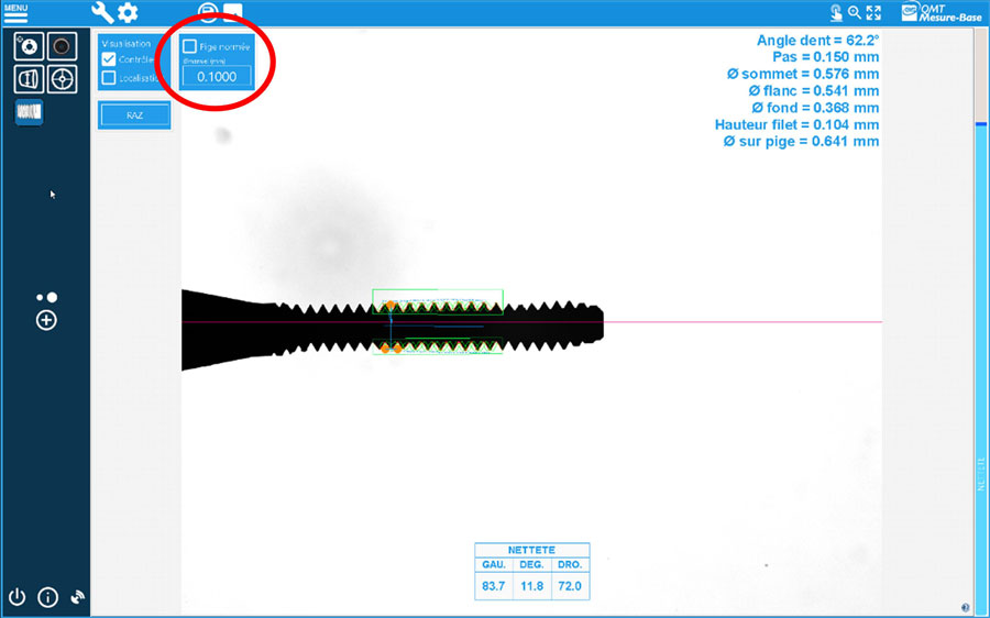 Après dépose du taraud sur un posage spécifique, les mesures sont automatiquement réalisées, elles sont précises au micron et répétables telles que spécifiées dans la norme NIHS.