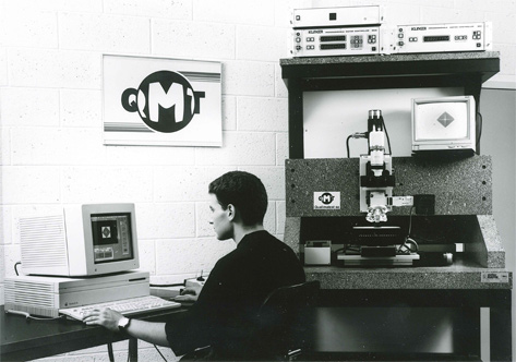 Le premier système de vision QMT a été développé pour l'industrie horlogère en 1991. Cet équipement, Le Multimicro, permettait la mesure 100% automatique de la dureté Vickers de composants horlogers ainsi que la mesures de dimensions de composants à très haute précision.