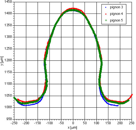 La mesure dimensionnelle comparative de trois pignons réalisée avec le Multimicro
