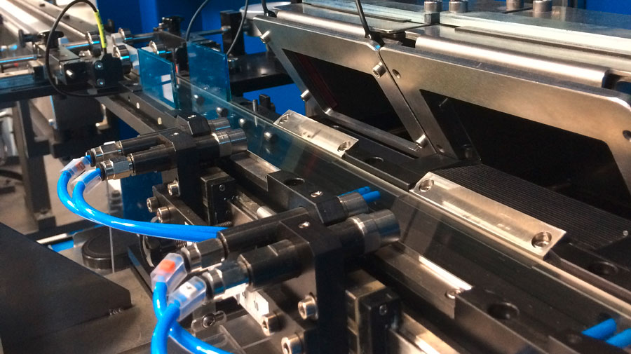 Die Mechanik des QMTInspect-200 wurde komplett überarbeitet, um die Handhabung von Teilen zu verbessern und eine viel genauere Einstellung zu ermöglichen. Diese Modifikationen ermöglichen eine Erhöhung der Rate um 50% (20.000 Teile pro Stunde für Teile mit einer Länge von 20 mm) sowie eine Verkürzung der Einstellzeit beim Ändern der Referenz.