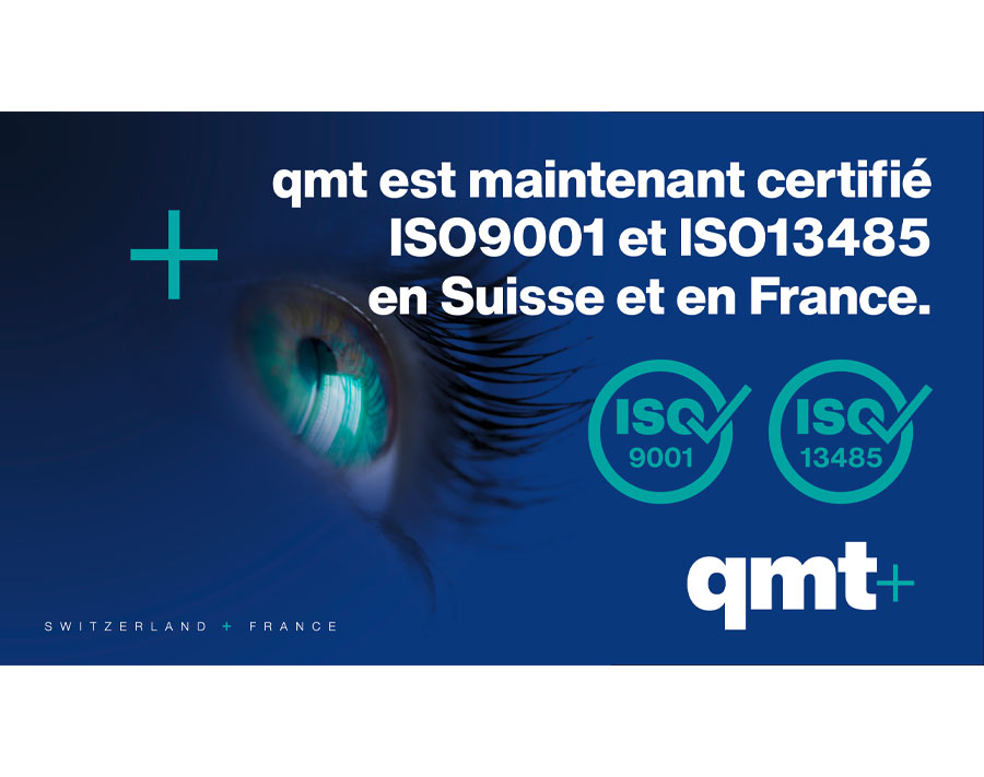qmt a annoncé le 9 janvier 2020 l'intégration de Qualimatest et SAPHIR pour créer qmt. Depuis cette date toute l'équipe qmt s'est investie pour mettre en oeuvre cette intégration. Nous sommes heureux d'annoncer que ces travaux se sont terminés par le passage des certifications ISO9001 et ISO13485 pour l'ensemble de qmt (recertification de QMT SUISSE SA et nouvelle certification de QMT FRANCE SAS).