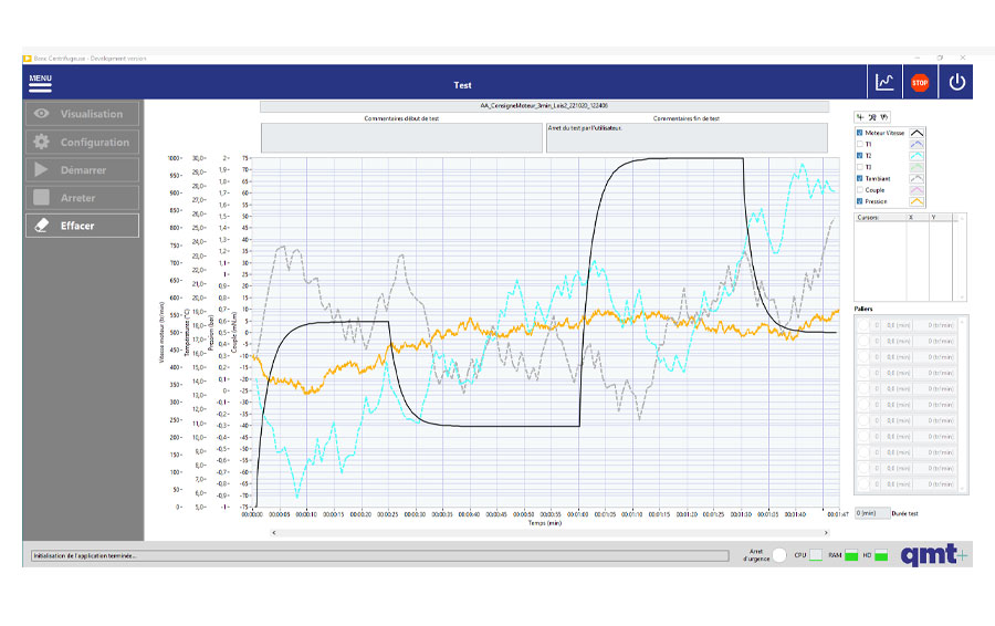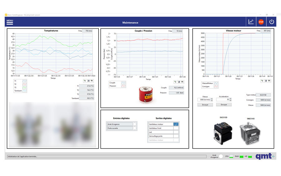 Le logiciel basé sur la plateforme qmt, fruit de plusieurs décennies de développement, intègre la gestion utilisateurs, une interface sur mesure, le log des évènements logiciels et utilisateurs (changement de recettage. Les interfaces utilisateurs (IHM) ont été développés spécifiquement pour ce client pour viser une utilisation ergonomique. Dans ce cas de figure, le logiciel devra permettre de :