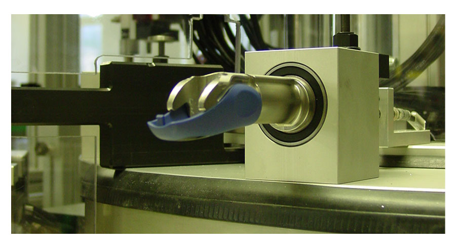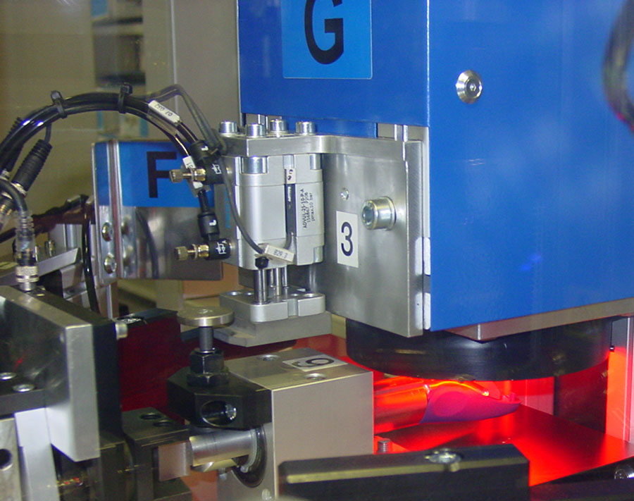 qmt a réalisé une station optique de contrôle qui s'intègre dans une machine à table tournante de 8 postes. Cette machine réalise l'assemblage et la tampographie de capots en plastique pour des devives d’injection d'insuline.