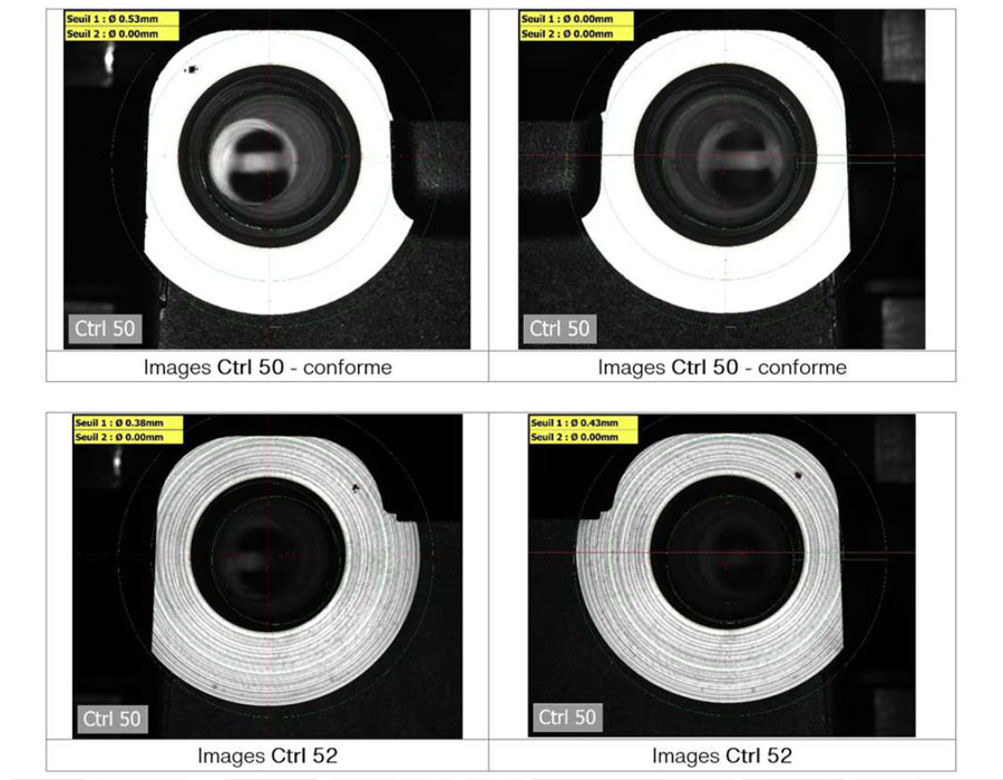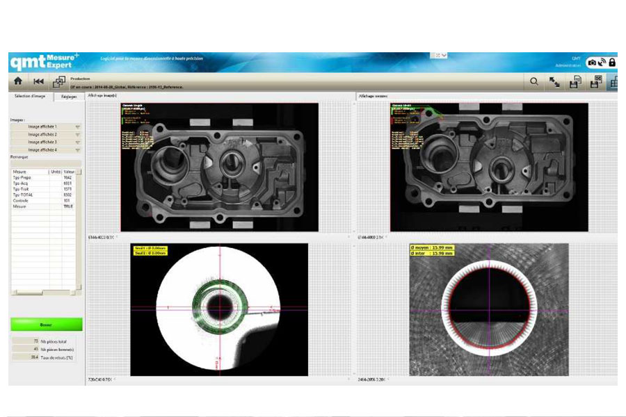La solution a été réalisée avec le logiciel de vision qmtmesure-expert qui a été spécifiquement développé pour des solutions intégrées dans un processus automatique avec plusieurs stations sur le même système informatique. Il permet la création des programmes de contrôle, l'affichage en production et la sauvegarde des données pour leurs valorisation.