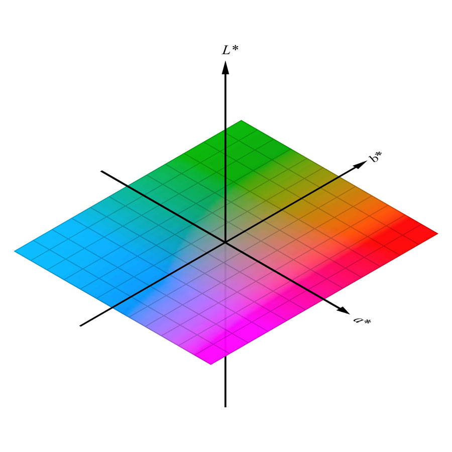 Pour harmoniser et standardiser les mesures de couleur à l'échelle internationale, la Commission Internationale de l'Éclairage (CIE) a défini le modèle CIELAB en 1976 [3]. Ce modèle, également connu sous le nom de CIE76 (L*, a*, b*), est largement utilisé pour décrire les couleurs perceptibles par l'œil humain. Le modèle CIELAB repose sur les valeurs tristimulus (X, Y, Z) et les convertit en un espace de couleur perceptuellement uniforme. Cela signifie que les différences de couleur perçues correspondent plus précisément aux distances dans cet espace. Le L* représente la luminosité, tandis qu’a* et b* représentent les axes vert-rouge et bleu-jaune.